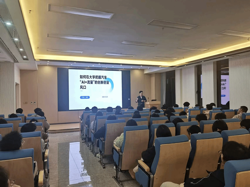 路畅在分享中指出,随着智能化、网联化成为汽车产业转型核心,AI技术在自动驾驶、智能座舱等领域持续深化,流量经济则为汽车产品推广与用户服务开辟了新路径,“AI+流量”正成为汽车领域创新创业的重要风口。针对大学生如何把握机遇,他从知识储备、实践能力与创新创业意识三个维度提出建议:既要夯实专业基础、主动学习AI与大数据相关知识,构建跨界知识体系;也要积极参与竞赛、实习与项目,增强解决实际问题的能力,尤其要关注流量运营实践;此外,还应保持对行业趋势的敏感,从用户需求出发寻找创新切入点,并做好风险预判。